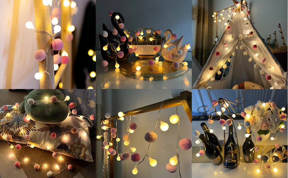 20 LED Wool Ball Fairy Lights – Warm White Cotton Ball String Lights 3.3M – Indoor Decor