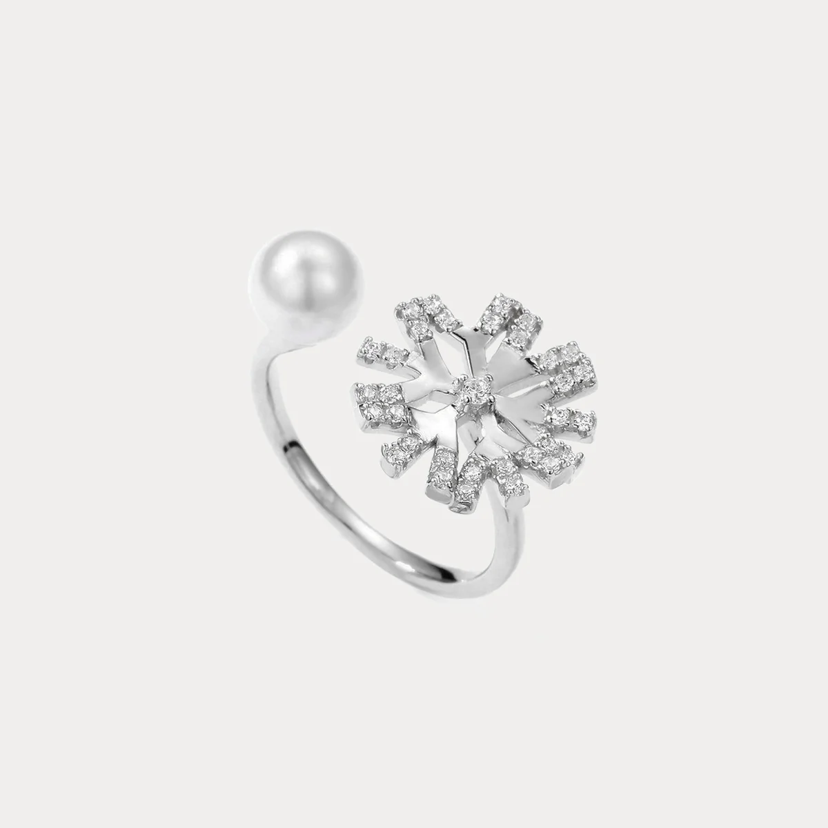Elegant Pearl And Crystal Floral Adjustable Ring