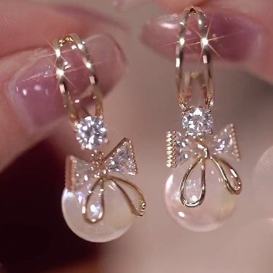 Fashion Trend Crystal Zircon Bow Pendant Earrings