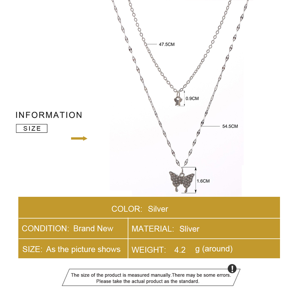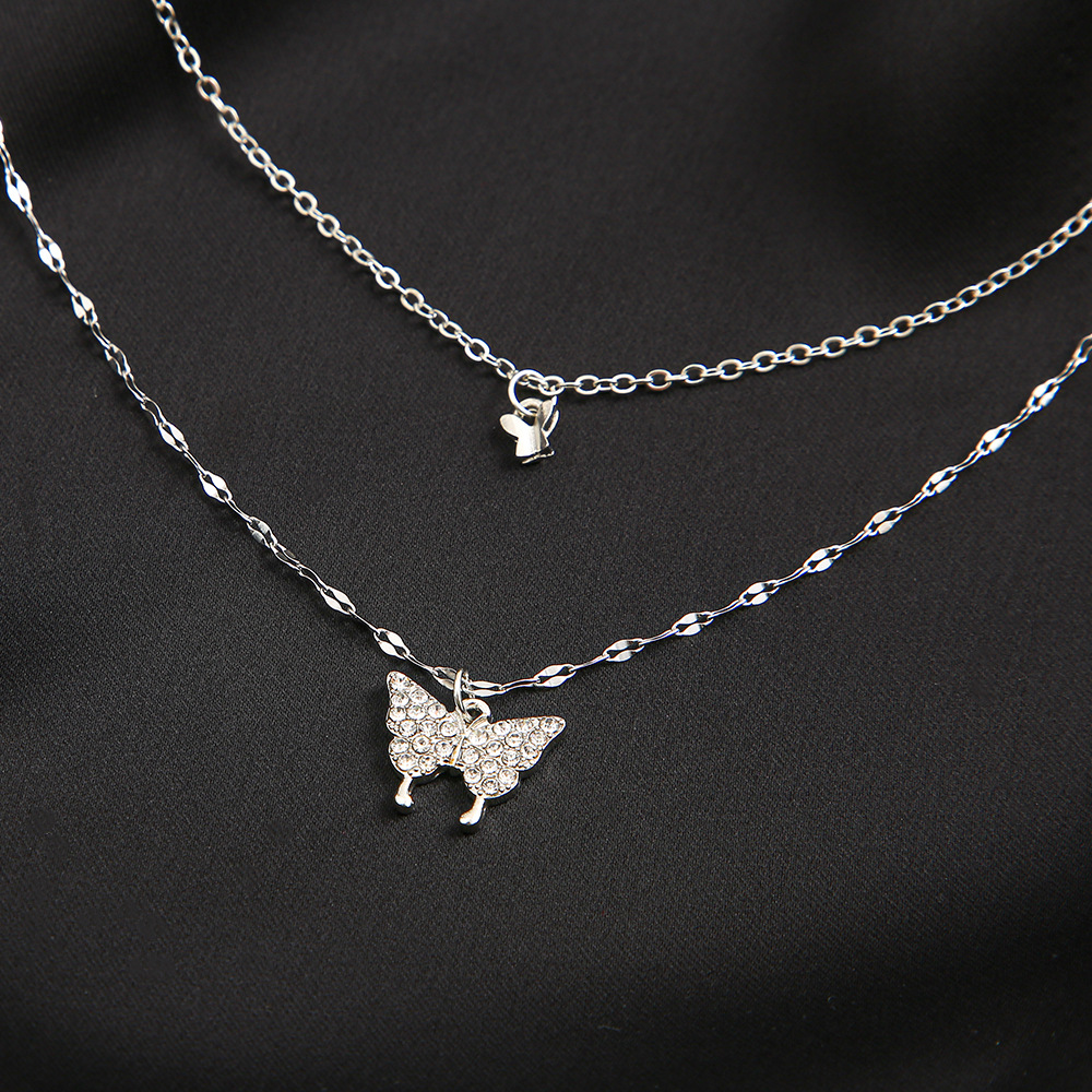 New Shiny Butterfly Necklace Double Layer Clavicle Chain Necklace
