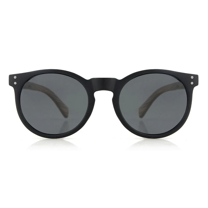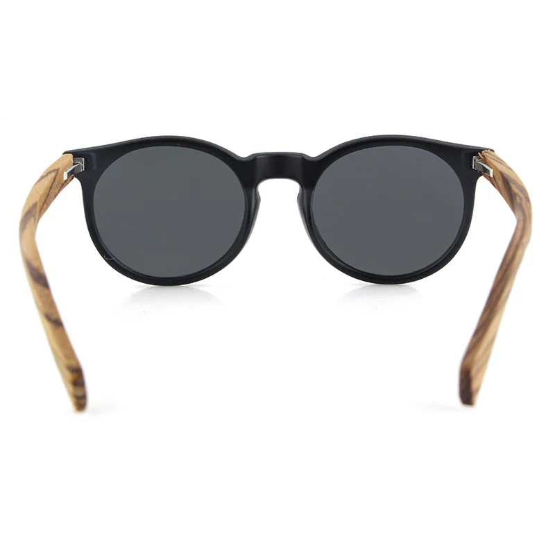 These sunglasses feature a modern design with a harmonious blend of materials. The frame is constructed from lightweight and durable plastic, offering comfort and resilience for daily wear. The arms are crafted from eco-friendly wood, showcasing a natural grain pattern that adds a touch of uniqueness and sophistication to the overall look.